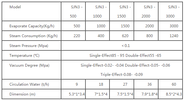 The equipment combines the external circulation heating system with the way of vacuum concentration together in order to enhance the evaporation speed and the concentration proportion can get above to 1.2.
